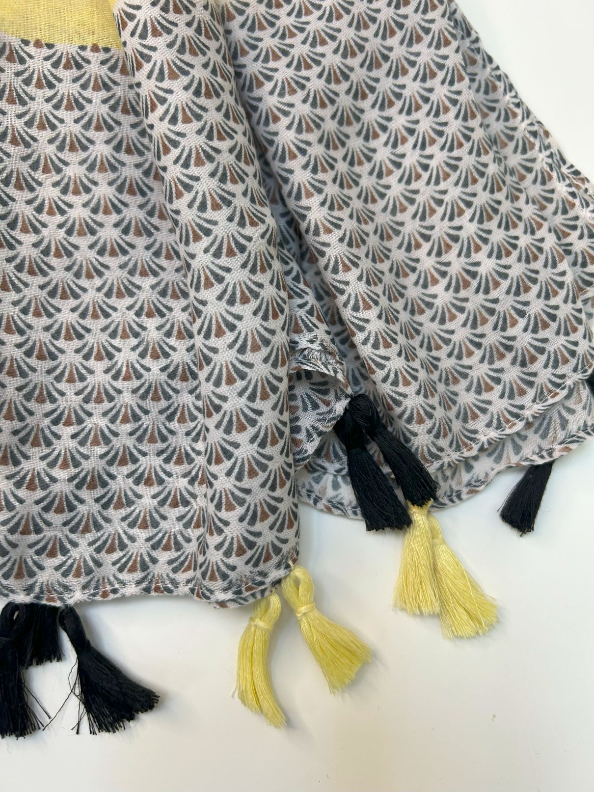 Stay cool this summer with the J. Stole/Scarf. Made from lightweight lawn fabric and adorned with tassels, it adds fresh, breezy style to any women's wardrobe.