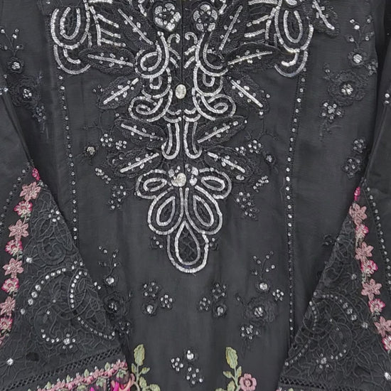 Maria B Inspired Embroidered Black Chiffon Stitched 3pc- RW3-28