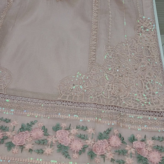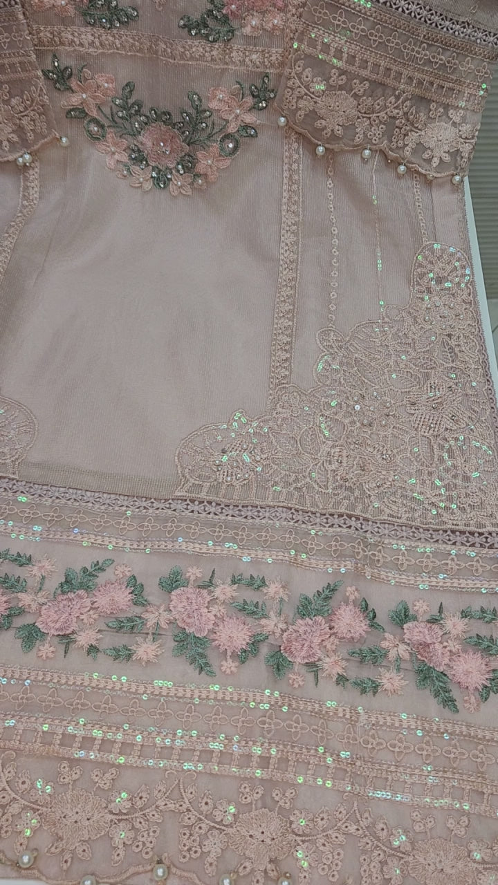 Maria B Inspired Embroidered Peach Khadi Net Stitched 3pc -RW3-33